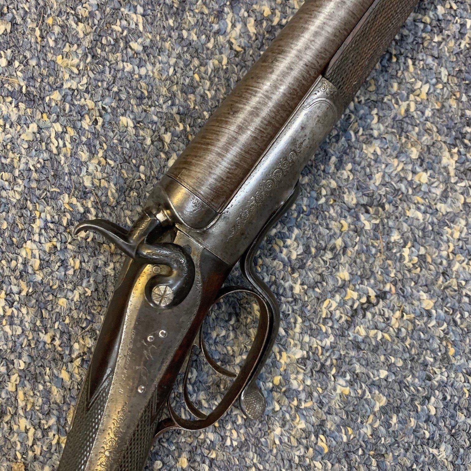 12 Bore double barrel hammer shotgun. 30 inch barrels.